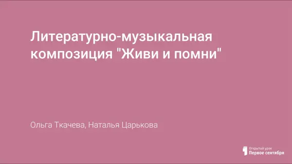 Великая Победа во Второй мировой войне - это самое знаменательное событие в истории ХХ века, которое не оставляет никого равнодушным и в наши дни. Воспитание юных граждан и патриотов - одна из задач современной школы. Одной из форм патриотического воспитания молодежи является конкурс патриотической песни и литературно-музыкальных композиций, который стал традиционным в нашей школе. Предлагаемый сценарий можно использовать как на уроке, так и во внеклассной работе.