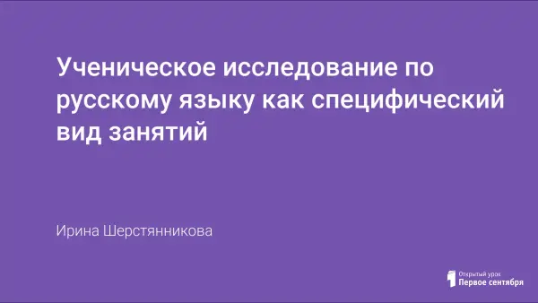 Ученическое исследование по русскому языку как специфический вид занятий