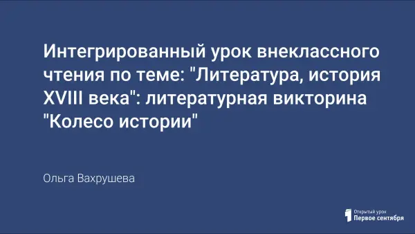 Викторина в игровой форме позволяет проверить знание как программного, так и дополнительного материала. Викторина включает в себя вопросы по истории, литературе и истории костюма (образовательная область – технология) XVIII века. Игра проводится в 2 этапа: первый – командный, второй – личный.