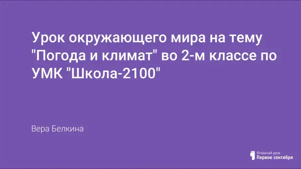 На занятии обучающиеся учатся различать погоду и климат, описывать погоду и объяснять причины происходящих природных явлений. Обучающие технологии: проблемное обучение, информационные.