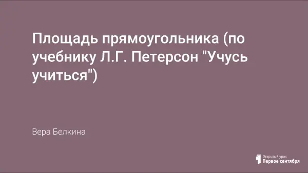 На уроке учащиеся изучают, как находится площадь прямоугольника, зная длину и ширину. Развиваются вычислительные навыки, логическое мышление, математическая речь.