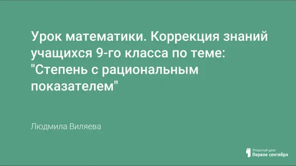 Представленный урок для учащихся 9-го класса по теме “Степень с рациональным показателем” проводится до или после выполнения контрольной работы, как работа над ошибками или итоговый урок, где отрабатываются и корректируются знания учащихся по определенной теме. Предлагаемый материал также можно использовать при проведении смотра знаний учащихся.