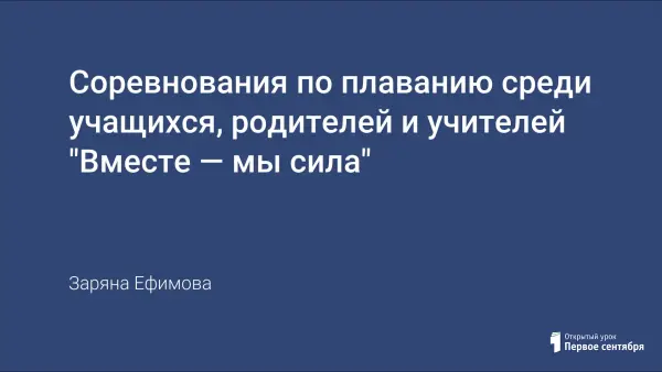 Соревнования по плаванию среди учащихся, родителей и учителей имеет целью содействовать повышению мотивации к здоровому образу жизни; способствовать преемственности поколений, укреплению семьи.