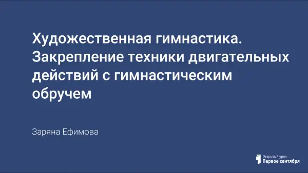 Цели урока: закрепить технику исполнения отдельных элементов с гимнастическим обручем (вращение, броски в горизонтальной и вертикальной плоскости, манипуляции); согласовать технику исполнения элементов с гимнастическим обручем с элементами хореографической подготовки (равновесие, поворот, перекат); выполнить часть упражнения с обручем, достичь слитности движений в заданном ритме, законченность и точность каждого движения.