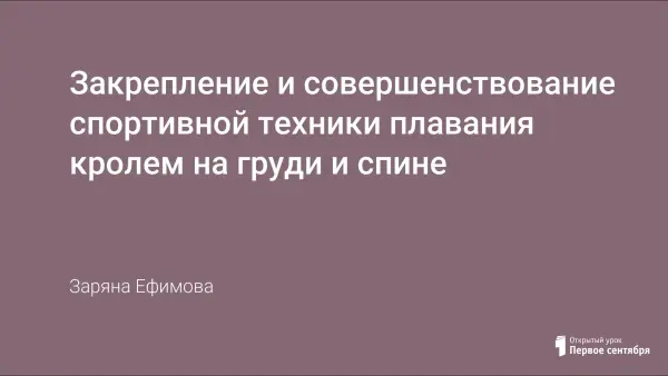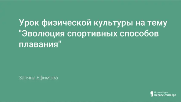 Цели урока: знать основные этапы развития спортивных способов плавания; уметь использовать приобретенный навык спортивного плавания для восприятия и освоения нового материала.