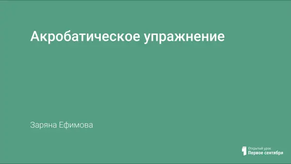Цель урока: знать правила поведения в зале гимнастики; иметь представление о видах спортивной гимнастики; соблюдать технику безопасности при работе на спортивных снарядах и с гимнастическими предметами; понимать значимость разминки; уметь подобрать инвентарь к уроку; знать общие и специальные упражнения для проведения качественной разминки и подготовке к основной работе на уроке (познавательные универсальные учебные действия); закрепить технику исполнения акробатических элементов (познавательные универсальные учебные действия); повторить терминологию акробатических элементов (познавательные универсальные учебные действия); прочитать и продемонстрировать упражнение.