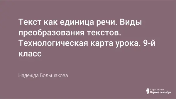 Представлен урок изучения видов преобразования текстов на основе ранее изученного материала, содержит задания по формированию функциональной грамотности обучающихся, будет полезен для работы по развитию речи, в том числе для подготовки к ОГЭ. Применяются индивидуальные задания, опорные таблицы.