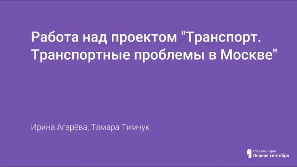 В статье рассматриваются этапы работы над проектом "Транспорт. Транспортные проблемы в Москве" и его компьютерной презентацией.