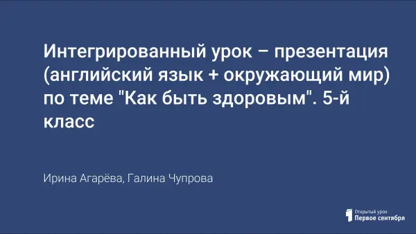 Интегрированный урок (английский язык – окружающий мир) в 5-м классе (УМК 5, И.Н. Верещагина, О.В. Афанасьева). В статье рассматриваются основные этапы работы, дается подробное описание урока-презентации по данной теме. Английский язык – это тот предмет, на котором мы рассматриваем самые разнообразные темы, включая тему «Здоровый образ жизни». Начиная изучать эту тему в 5 классе , мы снова и снова возвращаемся к ней в процессе обучения вплоть до старших классов, затрагивая каждый раз новые аспекты.