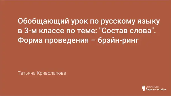 В данной работе представлен обобщающий урок по русскому языку в 3-м классе. Форма проведения урока – брэйн-ринг.