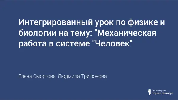 Интегрированный урок по физике и биологии на тему: "Механическая работа в системе "Человек"