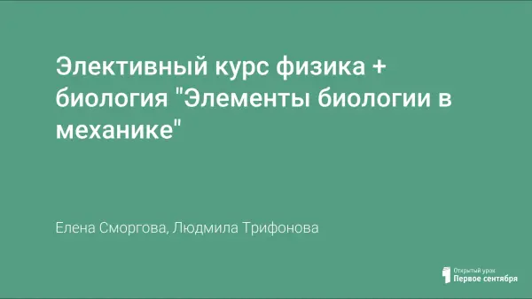 Программа элективного курса по выбору для предпрофильной подготовки учащихся 9-го класса "Элементы биологии в механике". Содержание курса позволяет рассмотреть основные направления и особенности связи школьных курсов физики и биологии. Знакомит учащихся с физическими методами исследования, которые находят широкое применение в биологии и медицине.