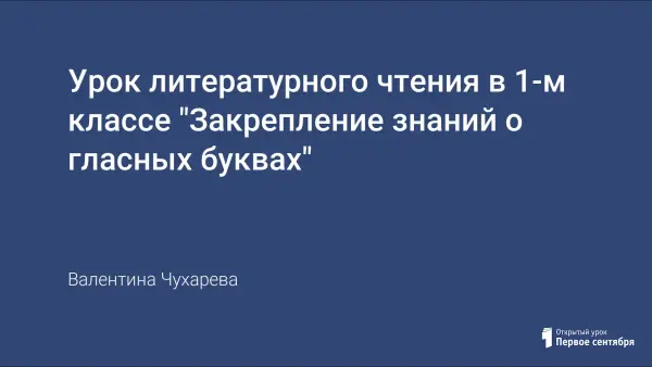 Урок литературного чтения в 1-м классе не только закрепляет знания о гласных звуках и буквах, но и ставит перед детьми экологическую проблему. Игровые моменты урока, разнообразие упражнений и видов работ, разноуровневые задания способствуют формированию навыка плавного слогового чтения, развитию речи, внимания и мышления. Дети не просто выполняют задания учителя, но и сами принимают активное участие в построении урока.