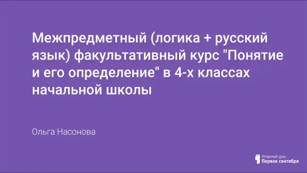 Многие изучаемые в начальной школе понятия проходят лишь первую стадию формирования: накопление наблюдений, выделение некоторых существенных признаков и их первичное обобщение. Дети не учатся самостоятельно формулировать определения. Здесь представлена программа и конспекты двух (из 10) уроков факультативного авторского курса "Понятие и его определение", знакомящего учащихся 4-го класса с некоторыми элементами логики: понятие, его объем и содержание, отношения между понятиями, род, вид, правила формулировки родовидового определения понятия.
