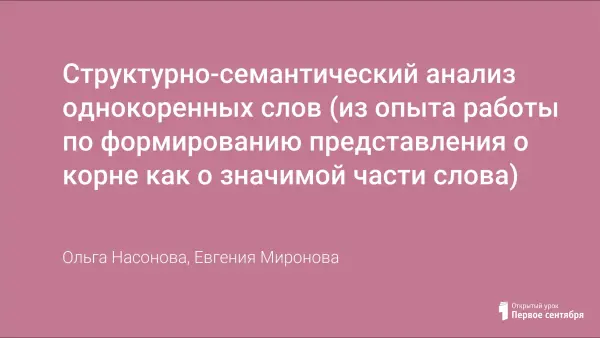 Структурно-семантический анализ однокоренных слов (из опыта работы по формированию представления о корне как о значимой части слова)