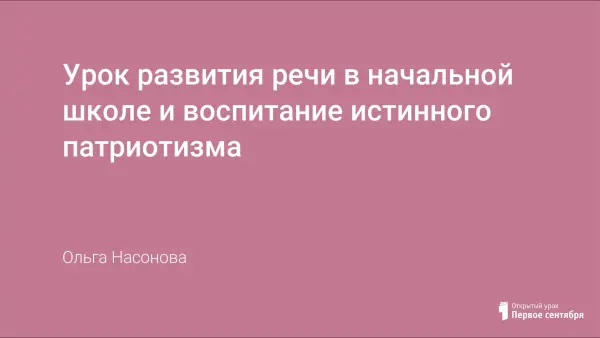 В статье рассказывается об экспериментальном введении урока развития речи в 1–4-х классах начальной школы и дается пример такого урока во 2-м классе по теме "Синонимы: Родина, Отечество, Отчизна". Также приводятся доводы автора в пользу воспитания у учащихся любви к Родине не формальным введением специального урока патриотизма, а на любом уроке, дающем такую возможность, – главное, чтобы материал урока был тесно связан с интересами детей и вызывал их живой отклик; приводятся и сочинения учащихся.