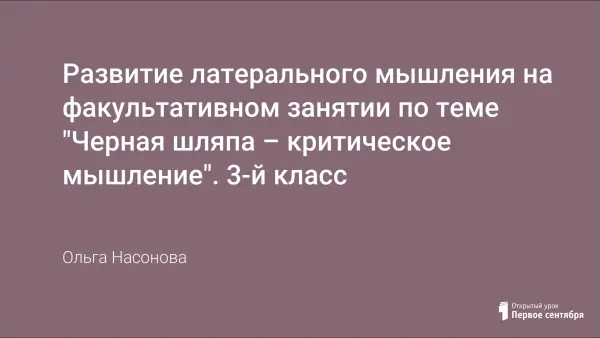 Занятие факультативного курса «Шесть шляп мышления» повышает эффективность мышления, так называемое «латеральное мышление» (Э. де Боно). Дети знакомятся с понятием «критическое мышление»; обучаются алгоритму его работы, мотивируются на позитивное мышление, критики, формируют различные виды УУД.