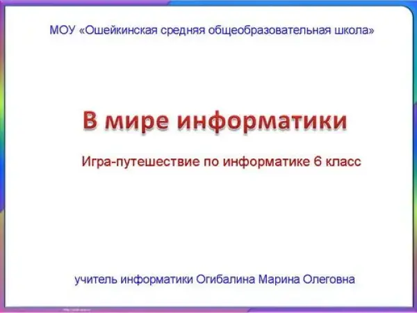 Игра-путешествие "В мире информатики". 6-й класс