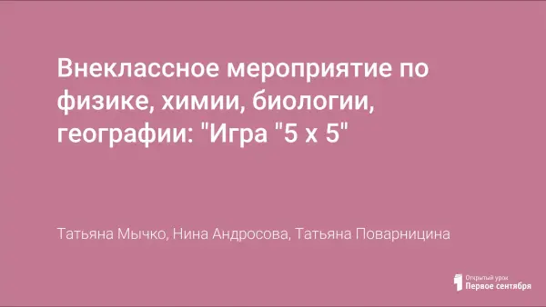 Внеклассное мероприятие по физике, химии, биологии, географии: "Игра "5 х 5"