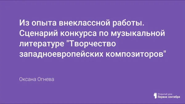 Предлагаемый сценарий конкурса позволит учащимся в игровой форме ознакомиться с различными специализациями музыковедения: экскурсовод, работник дома-музея того или иного композитора. Задание – творческий портрет "неизвестного" композитора. Музыкальный редактор в книжном издательстве. Задание-биография "с ошибками", "страница нотного приложения". Лектор, музыкальный критик. Задание-рассказ о "неизвестном" произведении.