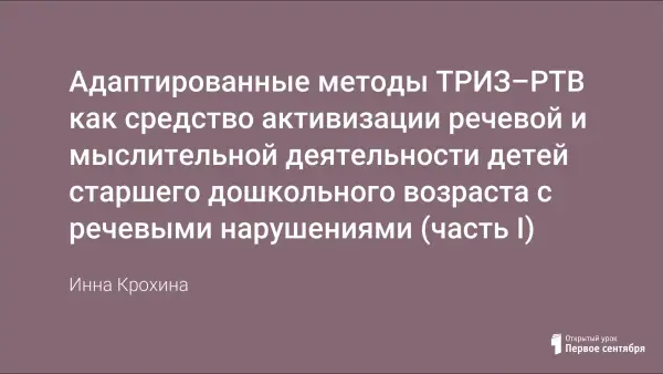 Статья посвящена применению адаптированных методов ОТСМ–ТРИЗ–РТВ в работе с детьми с речевыми нарушениями. Отслежена эффективность предлагаемой технологии на основе контрольно-оценочных экспериментов и отзывов воспитателей, родителей. Диагностика результатов развития воображения, мышления и речи подтвердила положительную динамику этих процессов. Предлагаемые практические материалы могут быть полезны воспитателям, логопедам, дефектологам, студентам педагогических институтов, родителям.