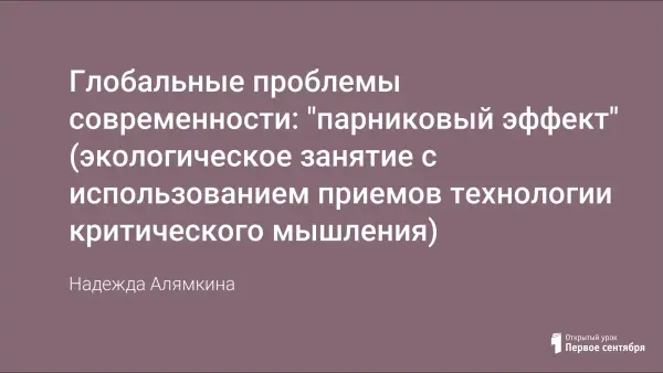 Глобальные проблемы современности: "парниковый эффект" (экологическое занятие с использованием приемов технологии критического мышления)