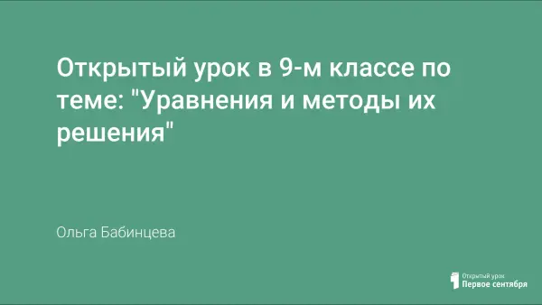 Урок алгебры в 9-м классе по теме "Уравнения и методы их решения" проводится с целью повторения, обобщения и систематизации знаний по теме. Применяется разноуровневый метод обучения.