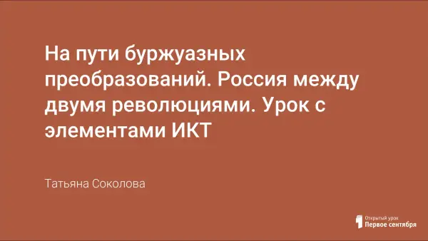 Цели урока: расширить знания учащихся о причинах, сущности и результатах буржуазных реформ П.А. Столыпина; сформировать умение давать оценку историческим событиям и деятельности исторических личностей; закрепить навыки оформления конспекта, умения выделять главное и устанавливать причинно-следственные связи; пробудить интерес учащихся к пополнению знаний на основе изучения дополнительной литературы.