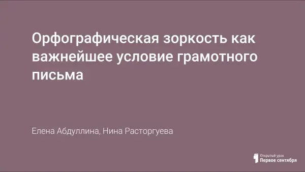 Орфографическая зоркость как важнейшее условие грамотного письма