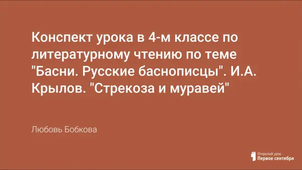 Конспект урока в 4-м классе по литературному чтению с целью познакомить учащихся с басней И.Крылова «Стрекоза и муравей» и закрепить литературоведческие понятия «басня», «мораль», «баснописец».