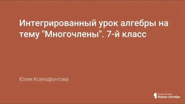 Интегрированный урок-путешествие знакомит с правилом действий со степенями; алгоритмом умножения одночлена на многочлен; алгоритмом сложения и вычитания многочленов; учит приводить подобные члены многочленов, складывать, вычитать многочлены.