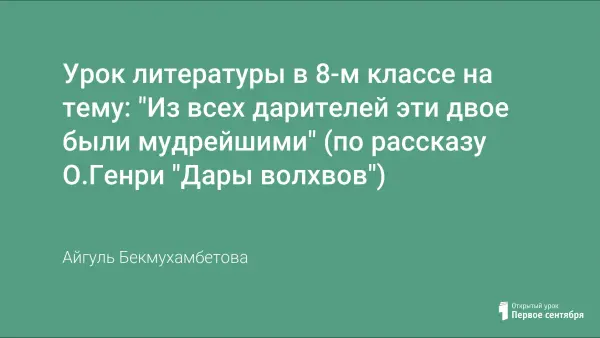 Цель: познакомить детей с личностью писателя О.Генри, с содержанием рассказа "Дары волхвов"; раскрыть важность духовного начала в человеке, чистоту нравственного мира героев; могучую силу любви, жизни и счастья; сформировать навыки социально-психологической характеристики героев, раскрыть роль деталей в обрисовке образов персонажей; воспитывать бережное отношение друг к другу, умение любить; расширять лексикон нравственных понятий.