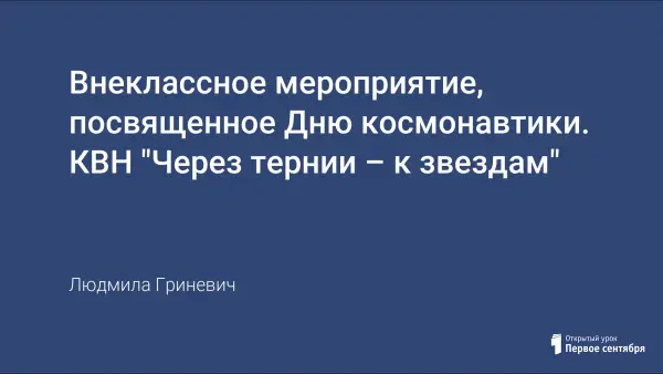 "Космический КВН" проводится в День космонавтики для учащихся с 6-го по 9-й класс. Внеклассное мероприятие позволяет восполнить пробелы в знаниях учащихся по астрономии. Ученики заранее получают список вопросов и заданий. Учитель проводит консультации, помогает найти литературу, ответы на вопросы. Вопросы для КВН составлены таким образом, чтобы ученики могли не только применить полученные в ходе подготовки к КВН знания по астрономии и физике, но и проявить сообразительность, находчивость, чувство юмора. Кроме сценария КВН, приведены примеры заданий, выход команды.