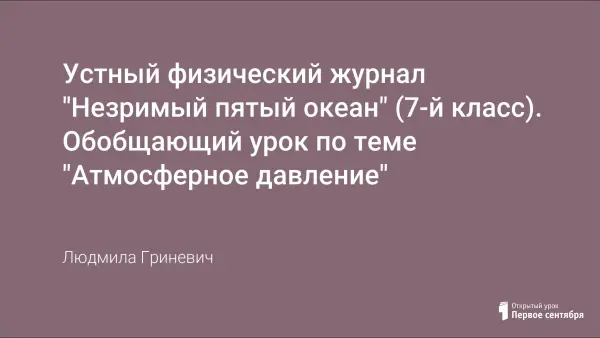Урок в виде устного физического журнала проводится в конце изучения темы "Атмосферное давление". Ученики, желающие принять участие в проведении журнала, готовят сообщения, опыты. Много желающих бывает проводить опыты. Они не только показывают опыт, но и должны объяснить его, если другие ребята этого не смогут сделать. Для ведения журнала выбираются два ведущих. Их выступления и сообщения ребят сопровождается показом слайдов через проектор.