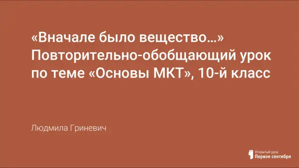 Двухчасовой нетрадиционный урок в форме игры проводится в конце изучения темы «Основы МКТ» в 10-м классе. В ходе урока учащиеся, выполняя различные конкурсные задания, повторяют уравнения состояния идеального газа, газовые законы, решают графические, качественные и расчётные задачи, обобщают знания по теме при создании таблицы «Структура МКТ». Урок позволяет проявить учащимся свои творческие способности, умение мыслить, слаженно работать в группе, применять и оценивать свои знания.