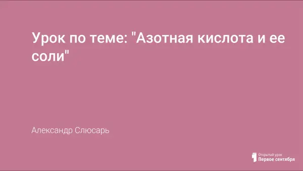 Урок по теме "Азотная кислота и ее соли" – один из уроков по теме "Химия неметаллических элементов: азот, фосфор, углерод, кремний", составленный в соответствии с программой по химии для 8–11-х классов общеобразовательных школ (авторы Л.С. Гузей, Р.П. Суровцева). Урок проводится с использованием ИКТ. На уроке рассматриваются свойства азотной кислоты, ее производство.
