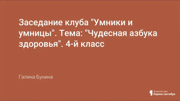 Заседание клуба "Умники и умницы"(4-й класс) по теме "Чудесная азбука здоровья" дает возможность учащимся на основе собственной творческой деятельности постичь понятие "витамины" и их значение.