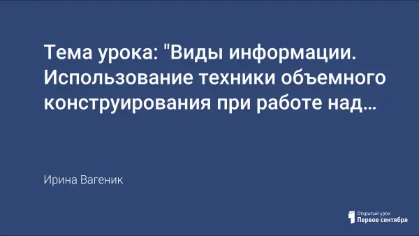 Тема урока: "Виды информации. Использование техники объемного конструирования при работе над проектом". Проектная деятельность на уроках информатики и художественного труда в начальной школе