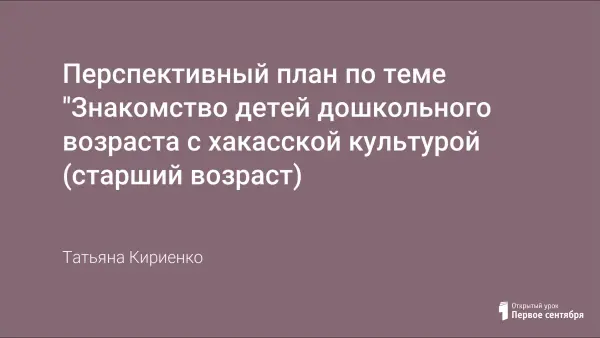 Представлен перспективный план работы по теме " Знакомство детей старшего дошкольного возраста с хакасской культурой".