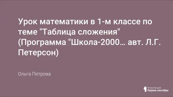 Представлен конспект урока математики в 1-м классе по теме "Таблица сложения". На уроке использован материал регионального компонента: знания растений, животных, рек и озер Кольского полуострова. На уроке закрепляются знания пройденного материала в 1-м классе, воспитывается чувство патриотизма, любви и бережного отношения к родному краю - своей малой родине.