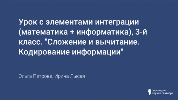 Урок с элементами интеграции (математика + информатика), 3-й класс. "Сложение и вычитание. Кодирование информации"