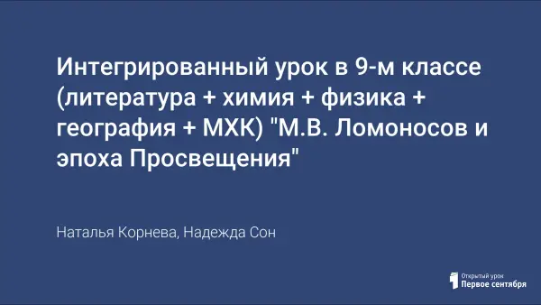 Интегрированный урок в 9-м классе (литература + химия + физика + география + МХК) "М.В. Ломоносов и эпоха Просвещения"