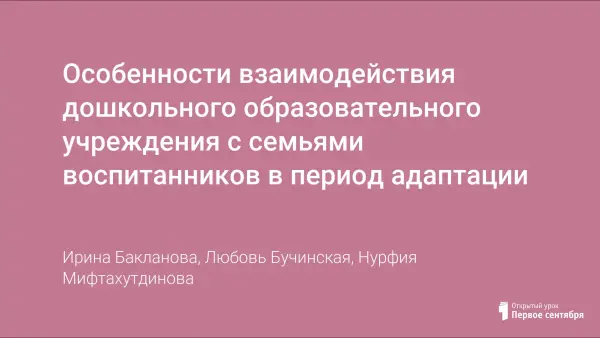 Особенности взаимодействия дошкольного образовательного учреждения с семьями воспитанников в период адаптации