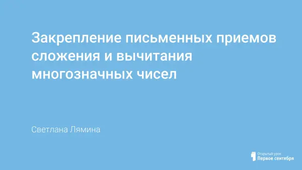 В ходе урока дети в игровой форме закрепляют письменные приёмы сложения и вычитания многозначных чисел; повторяют нумерацию многозначных чисел; отрабатывают вычислительные навыки. Развивается фантазия, воображение, логическое мышление, грамотная математическая речь учащихся. Проводится тестирование.
