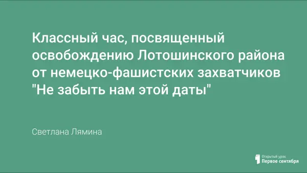 Классный час, цель которого расширение знаний учащихся о Великой Отечественной войне, об истории Лотошинского района в годы войны; воспитание уважения к пожилым людям: ветеранам войны, труженикам тыла.