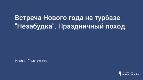 С учащимися 11–14 лет немного сложнее водить хороводы вокруг елки и просить ее зажечь свои огоньки, как бы уже и несолидно. Но в то же время они и не такие уж и взрослые, чтобы совсем отказаться от веселого новогоднего развлечения, да и новогодние подарки приятно получать от доброго Деда Мороза, несмотря на возраст. Тут есть над чем поломать голову. Представлен праздничный поход "Встреча Нового года на турбазе".