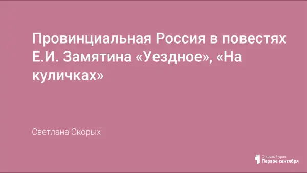 Урок для учащихся 11-го класса с углубленными возможностями, которые очень заинтересованы в изучении творчества Е.И. Замятина. Урок помогает учащимся творчески осмыслить тексты, понять замысел автора, выработать собственное мнение.