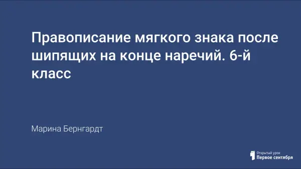 Цели урока: познакомить учащихся с правилом написания мягкого знака после шипящих на конце наречий; повторить правила написания мягкого знака после шипящих на конце имен существительных, прилагательных, глаголов; сформировать умения и навыки владения способом действия при выборе данной орфограммы.