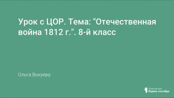 Цель урока: сформировать представление об Отечественной войне 1812 года как одной из самых славных вех отечественной истории, в которой нашли отражение массовый героизм, патриотизм и готовность к самопожертвованию солдат и офицеров.