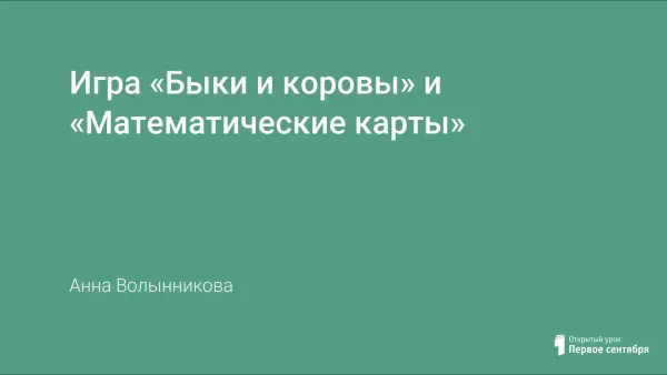В статье рассказывается о замечательной логической игре «Быки и коровы» в двух вариантах. Игра позволяет развивать умение сравнивать и анализировать, а также познакомит с игрой «Математические карты», позволяющей тренировать устный счет и таблицу умножения.